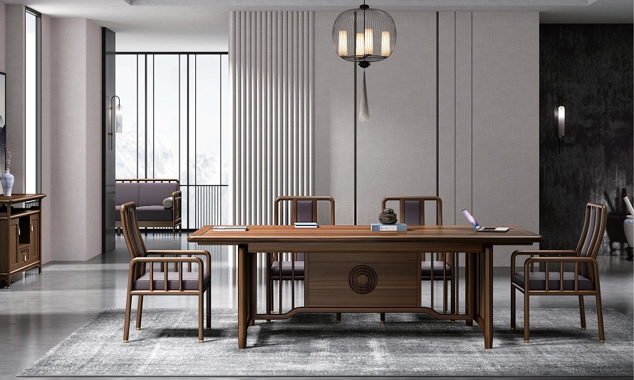 鴻熙系列新中式烏金木高管桌
