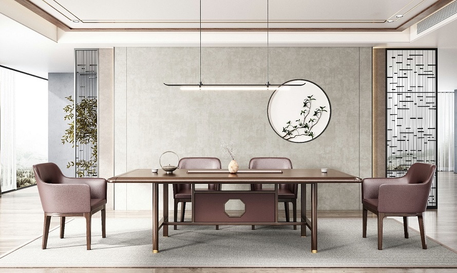 實(shí)木高端新中式會(huì)議洽談桌